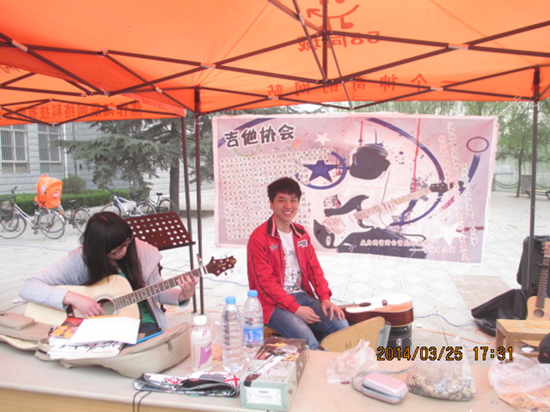 4月8日,校吉他协会以“释放青春活力 陶冶高尚情操”为主题,在崇学楼门前举办了大型的吉他弹唱活动。会员们尽展风采,分别演奏了beyond的经典歌曲《海阔天空》、《真的爱你》等,还有清新的《小情歌》、《滴答》、《心愿》等。活动中往来观众可参与互动,随意点歌,现场演奏,气氛十分活跃,给全校师生带来了不一样的精彩和乐趣!