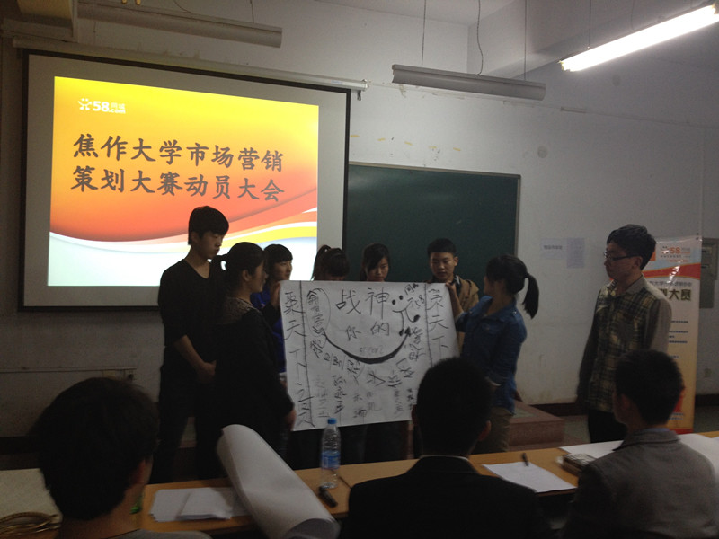 4月1日晚,市场营销协会于我校南校区举行了“营销策划大赛”动员大会。参加此次大会的有焦作市58同城总经理尹建坡、讲师任亚楠以及市场营销协会的家人们。